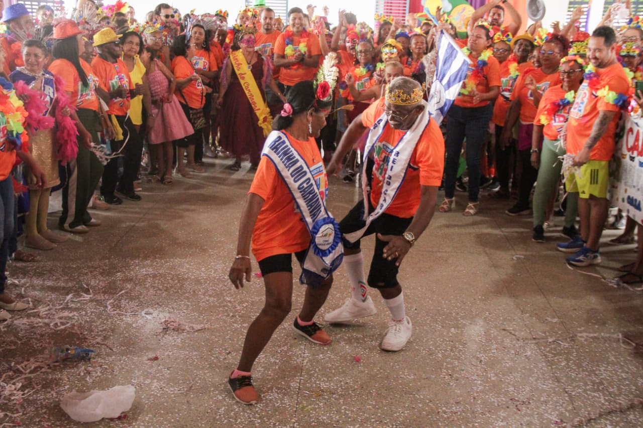 Um dos momentos mais aguardados foi a escolha do Rei e da Rainha do Carnaval da Melhor Idade, envolvendo representantes dos CRAS e do Centro do Idoso.
