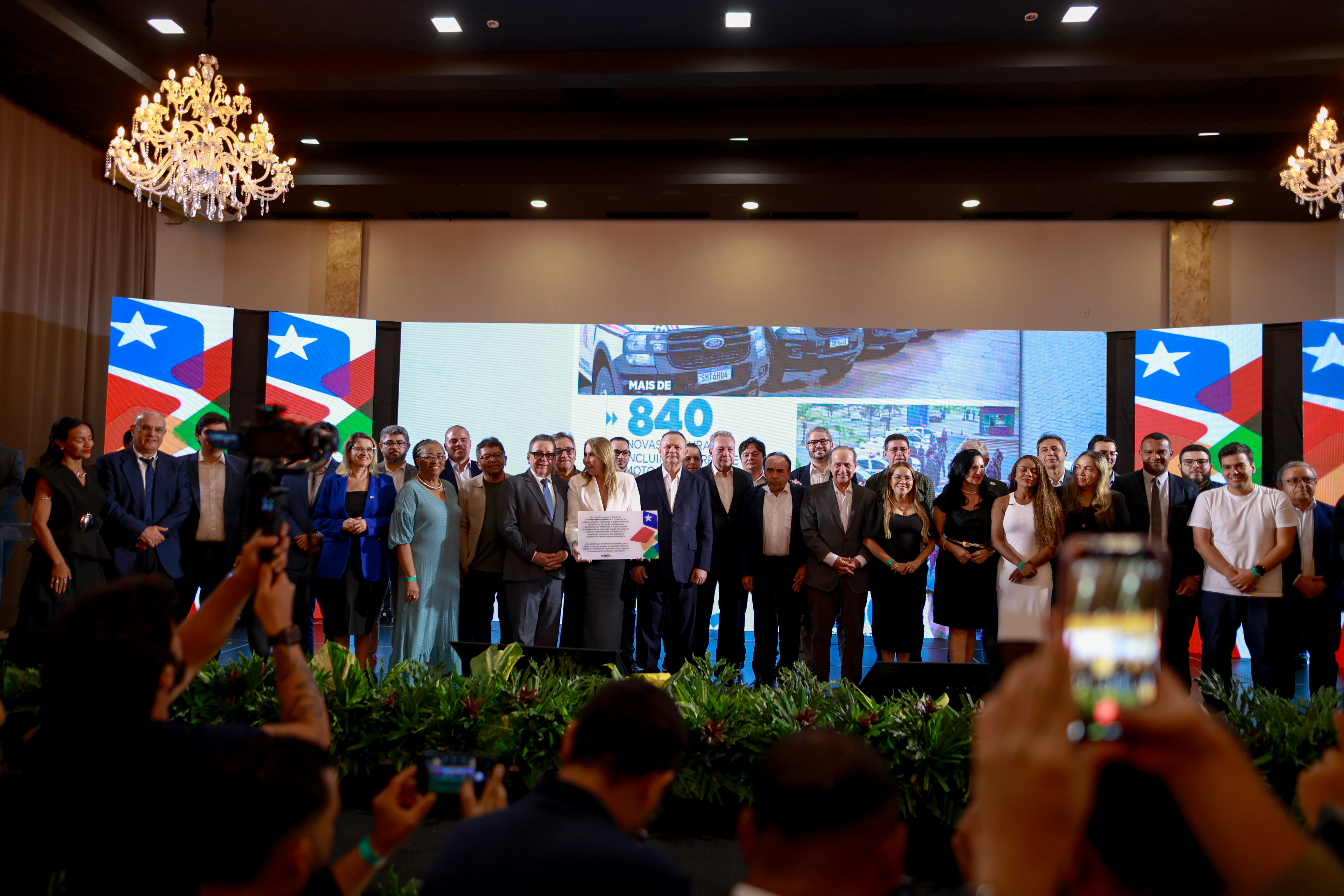 À noite, foi lançada a revista Boas Notícias do Maranhão, publicação com 110 páginas que apresenta os resultados da gestão desde 2021. Entre os destaques estão mais de 1,2 milhão de cirurgias realizadas, 305 mil óculos distribuídos, 250 mil tablets entregues a estudantes e redução de 61% nos crimes contra bancos.