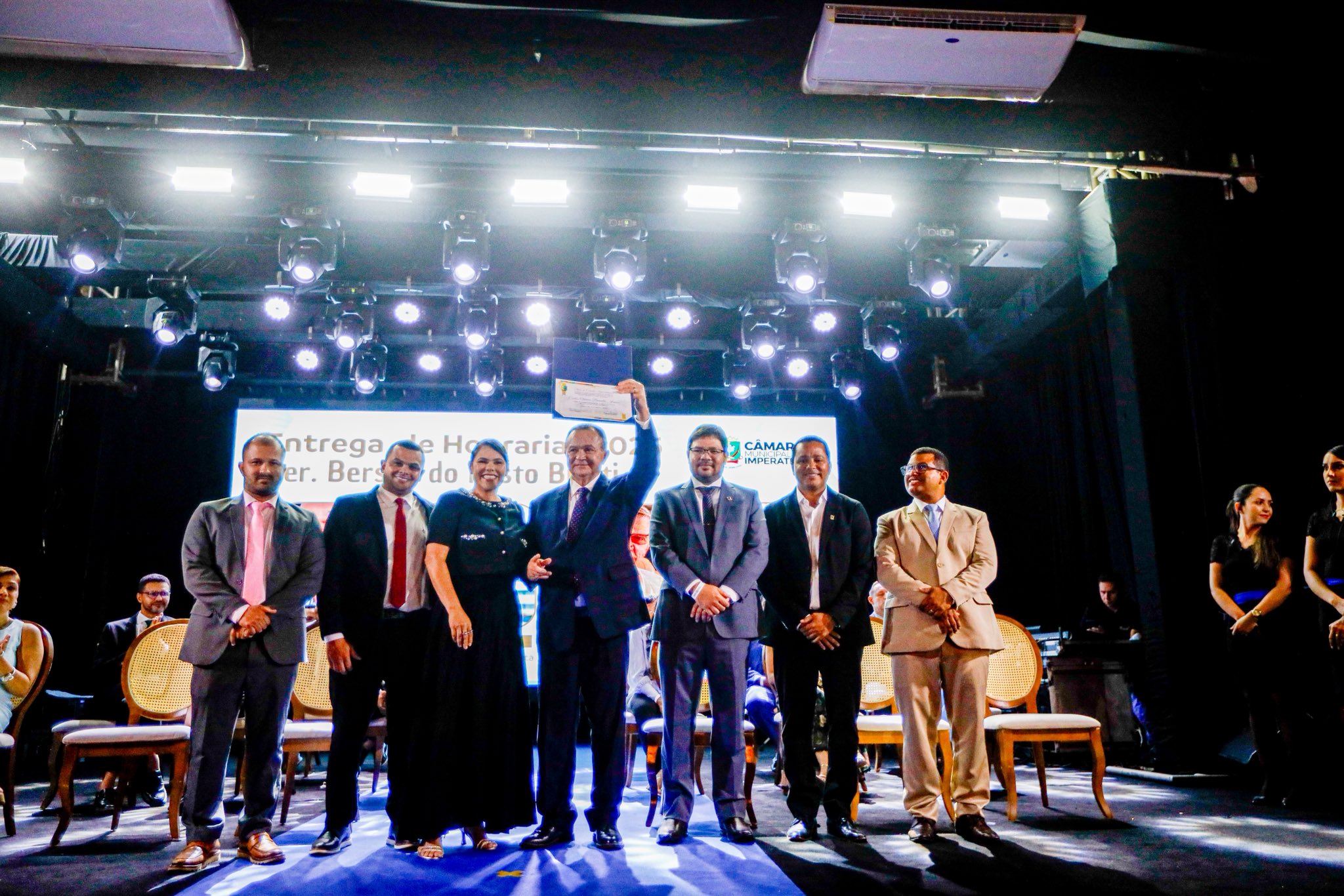 O governador Carlos Brandão recebeu, nesta quarta-feira (10), o título de Cidadão Imperatrizense, concedido pela Câmara Municipal em reconhecimento às ações do governo estadual no município. Brandão agradeceu a homenagem e destacou que a parceria com a cidade tem resultado em avanços em diversas áreas.