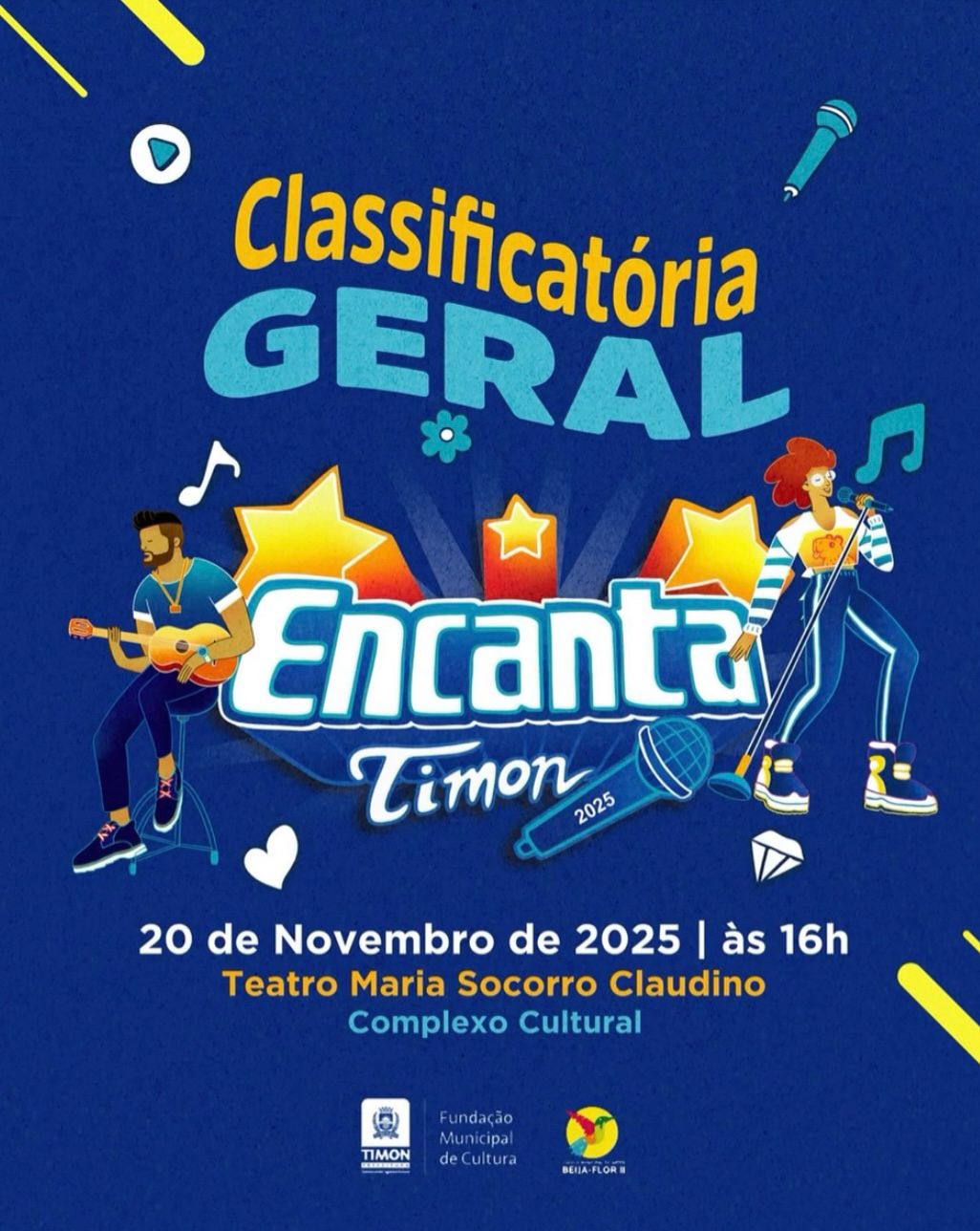 A fase classificatória do Festival Encanta Timon será realizada nesta quinta-feira (20), às 16h, no Teatro Municipal Socorro de Macêdo Claudino. O evento, promovido pela Prefeitura de Timon por meio da Fundação Municipal de Cultura (FMC) e da Secretaria Municipal de Educação (SEMED), é aberto ao público.