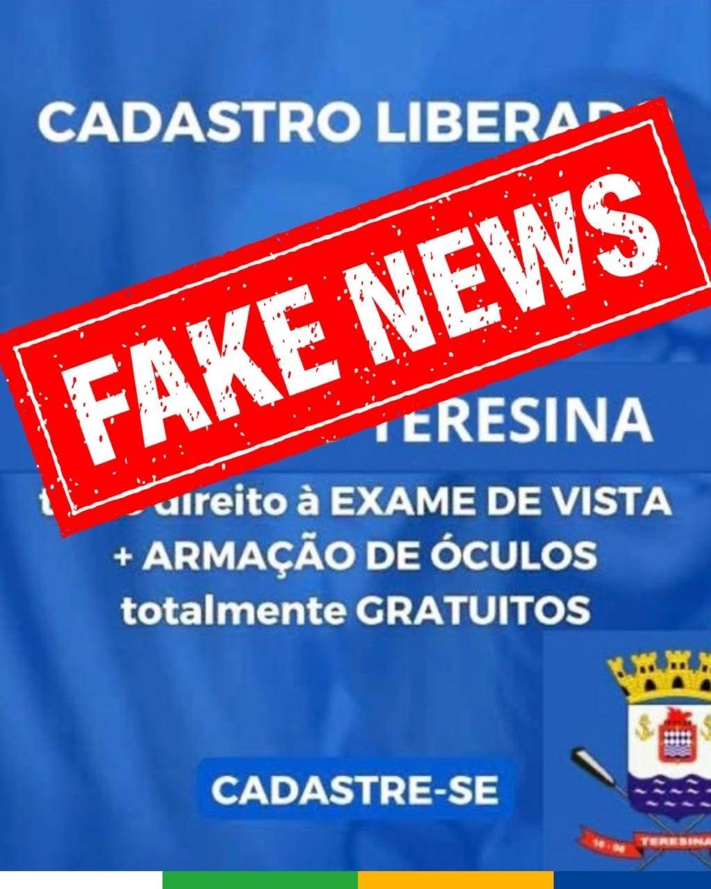 A Prefeitura de Teresina emitiu um alerta à população após a circulação de um anúncio patrocinado nas redes sociais que promete exames de vista e óculos gratuitos mediante cadastro online. A postagem utiliza indevidamente a logomarca do município e é falsa.