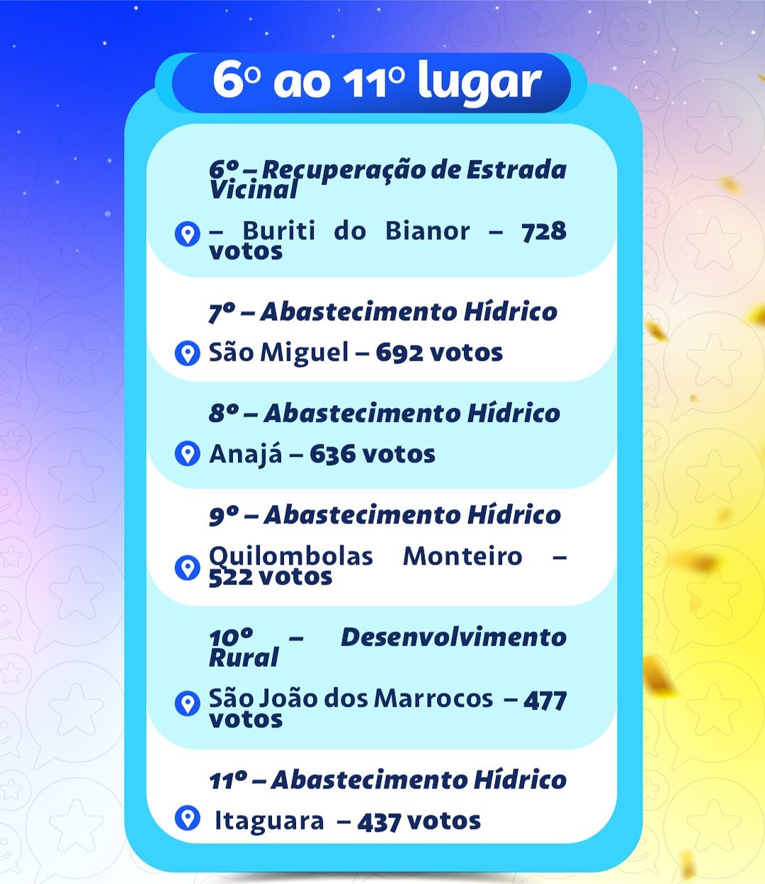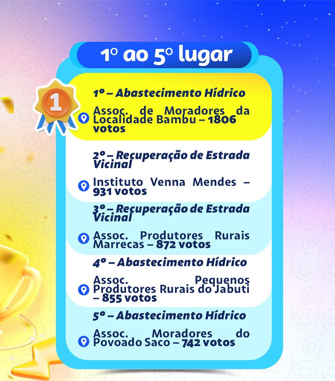 A lista completa com todas as propostas selecionadas pode ser acessada no site da Prefeitura: https://top.timon.ma.gov.br/