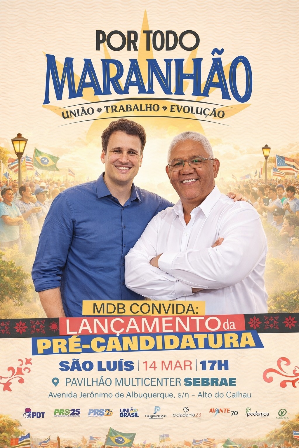 O evento está marcado para às 17h, no Multicenter Sebrae, em São Luís, e deve reunir milhares de apoiadores. A solenidade contará com a presença do atual governador Carlos Brandão, que também é do MDB e pretende ver o partido continuar no comando do estado.