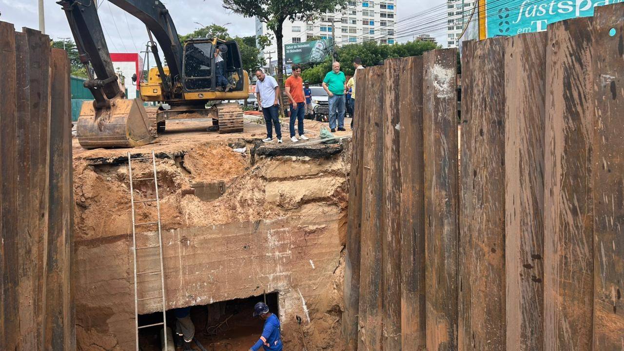 O fim de semana foi de trabalho intenso para a Prefeitura de Teresina, que atuou em duas frentes importantes para a cidade. Na zona Leste, equipes da Superintendência de Desenvolvimento Urbano (SDU) trabalham para recuperar um trecho da Avenida Jóquei Clube, entre as avenidas Ininga e Raul Lopes, que foi seriamente danificado pelas fortes chuvas dos últimos dias. A erosão causada pela água destruiu parte da pista e impossibilitou a passagem de veículos, obrigando a Strans a interditar a via nos dois sentidos. Motoristas devem buscar rotas alternativas enquanto os reparos estiverem em andamento.