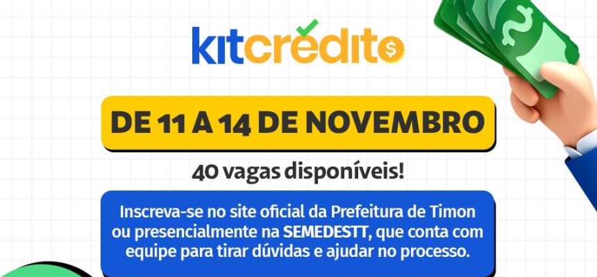 A Prefeitura de Timon, por meio da Secretaria Municipal de Empreendedorismo, Desenvolvimento Econômico, Trabalho e Turismo (SEMEDESTT), abriu as inscrições para o Programa Kit Crédito, iniciativa voltada ao fortalecimento dos pequenos negócios locais, em parceria com o Sebrae.