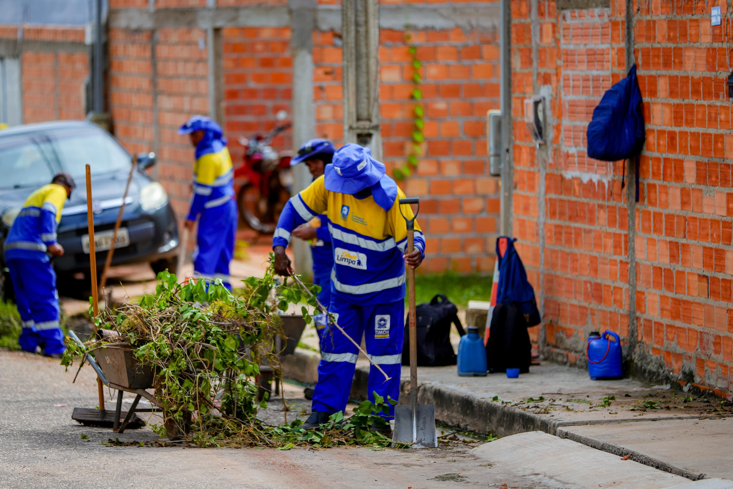 No Residencial Novo Tempo, a operação iniciada nesta semana combina recuperação do asfalto com serviços de limpeza pública. As equipes da SEINFRA trabalham na recomposição de buracos e recuperação de meio-fio e sarjetas, enquanto servidores da Secretaria de Limpeza Pública realizam capina, roço, varrição e retirada de pontos de descarte irregular de lixo.