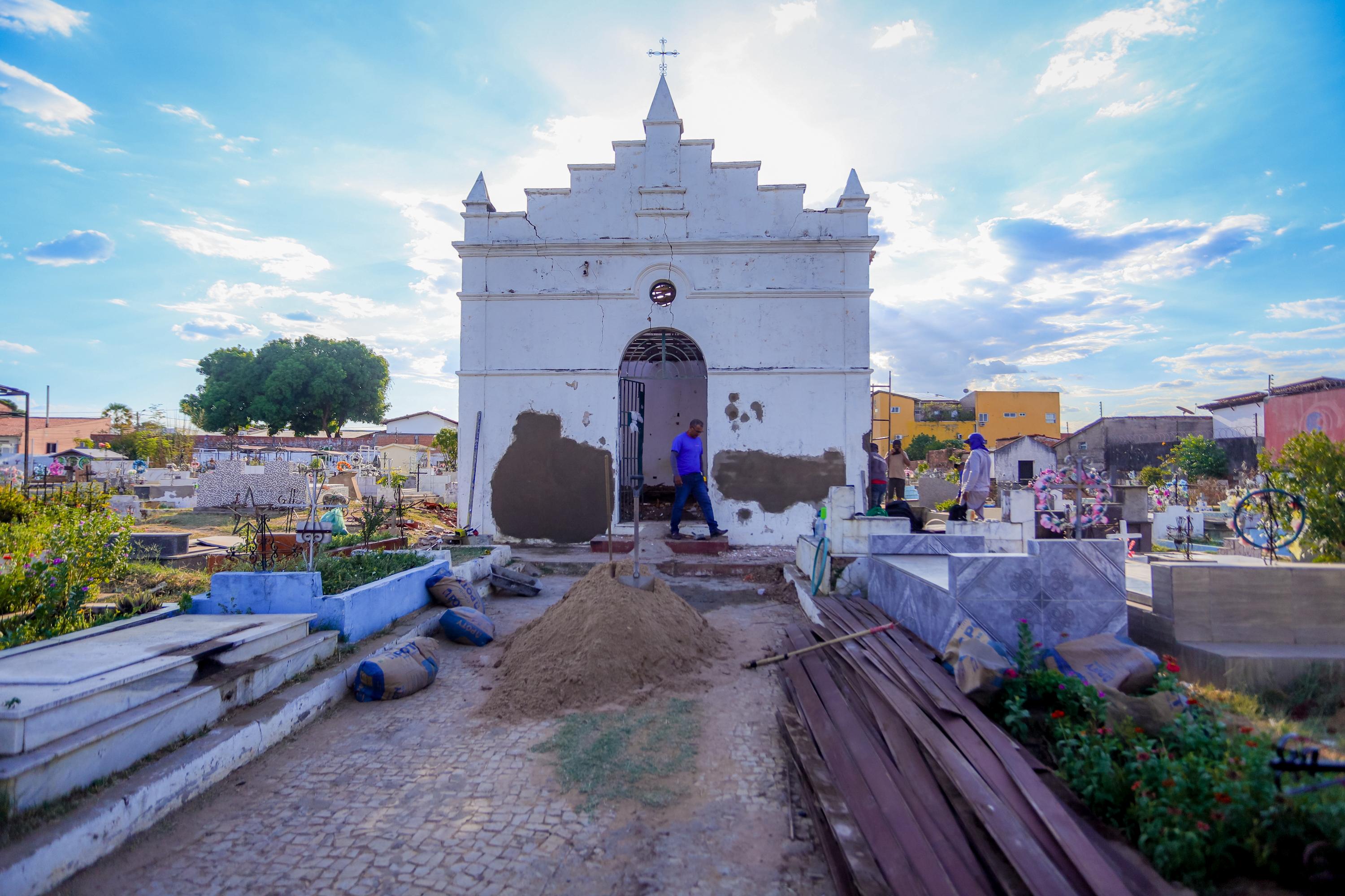 Entre as melhorias, o gestor destacou a reforma da capela do Cemitério São José, onde está sepultado o Padre Delfino, figura histórica e de grande importância para a cidade.