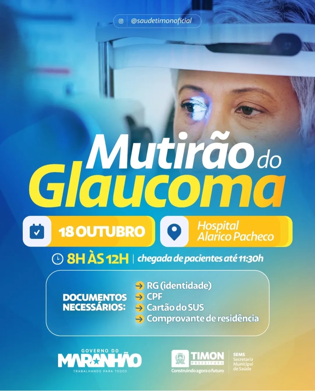 As prefeituras de Timon e Matões promovem, nesta semana, novas edições do Mutirão do Glaucoma, com atendimentos gratuitos voltados à prevenção, diagnóstico e tratamento da doença ocular que pode causar perda irreversível da visão se não tratada precocemente.