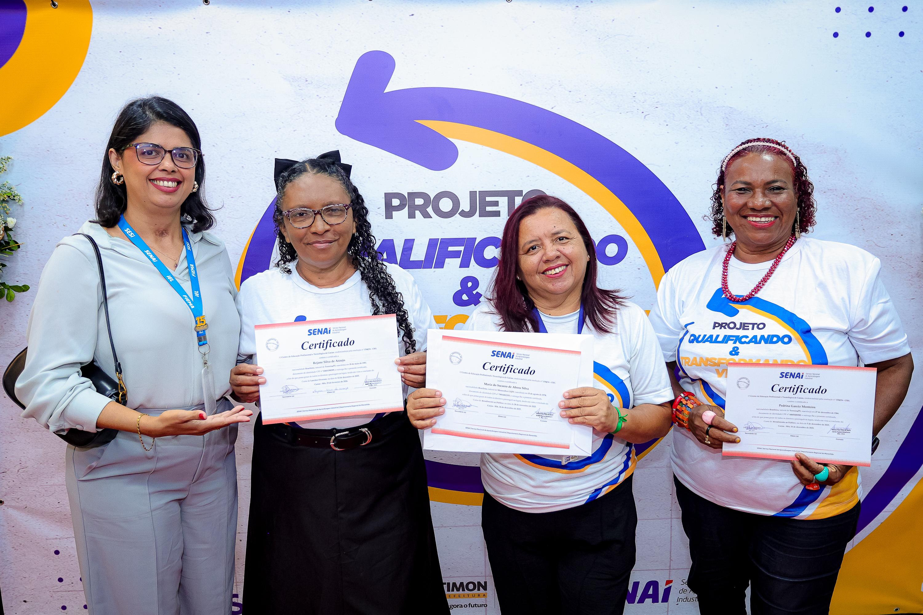 A Prefeitura de Timon entregou nesta quinta-feira (05) certificados a 292 moradores que concluíram cursos profissionalizantes gratuitos pelo projeto “Qualificando & Transformando Vidas”. A iniciativa, organizada pela Secretaria Municipal de Desenvolvimento Social (SEMDES) em parceria com o SENAI e o SENAC, tem como objetivo preparar pessoas de baixa renda para o mercado de trabalho. Para participar, é necessário estar inscrito no CadÚnico ou ser beneficiário do Bolsa Família.