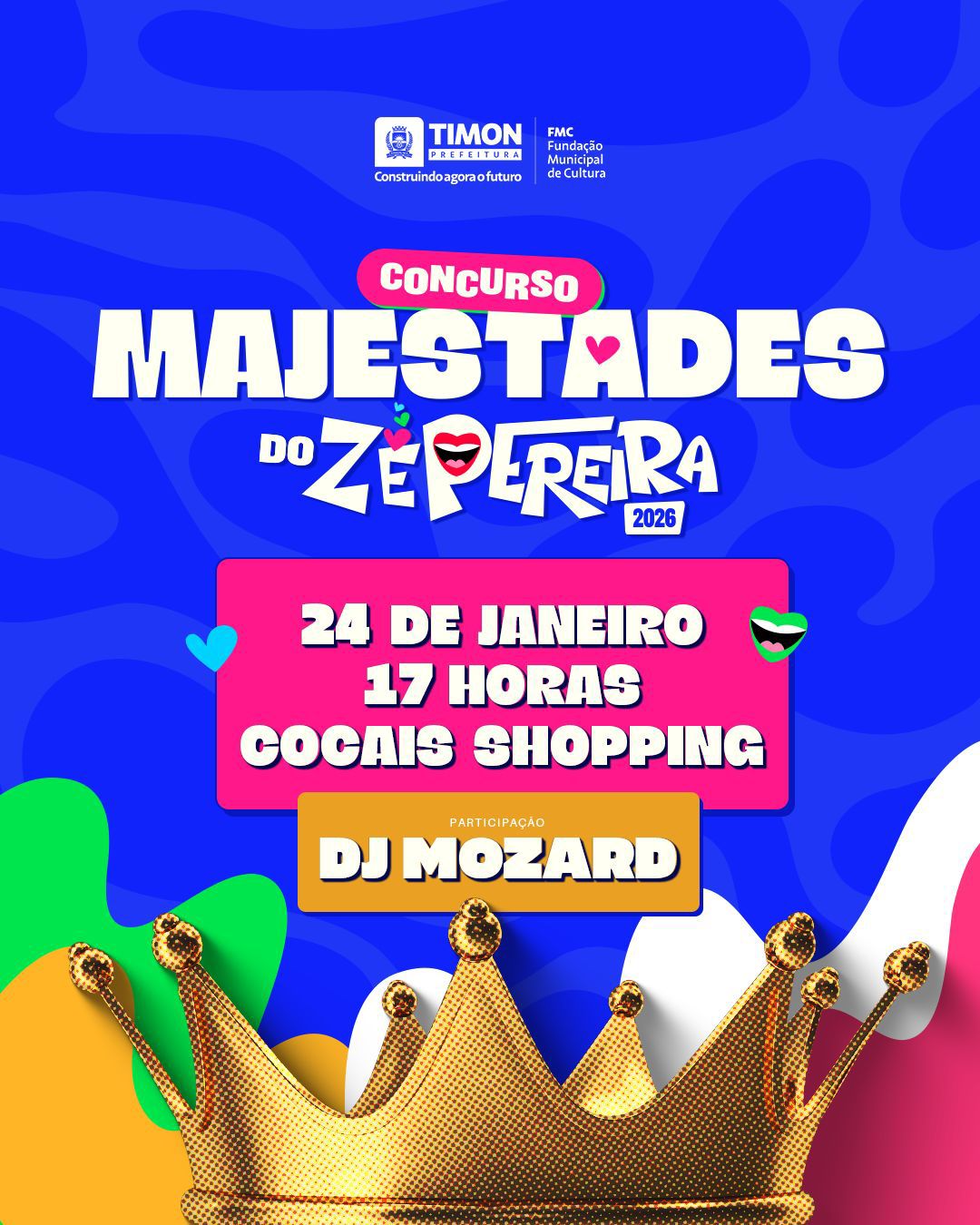 Enquanto avança no ordenamento urbano, Timon também se prepara para celebrar sua tradição carnavalesca. Neste sábado (24), a Prefeitura, por meio da Fundação Municipal de Cultura (FMC), realiza o Concurso das Majestades da 23ª edição do Zé Pereira de Timon. O evento acontece a partir das 17h, no Cocais Shopping, e marca oficialmente o início da programação da maior festa carnavalesca do município.