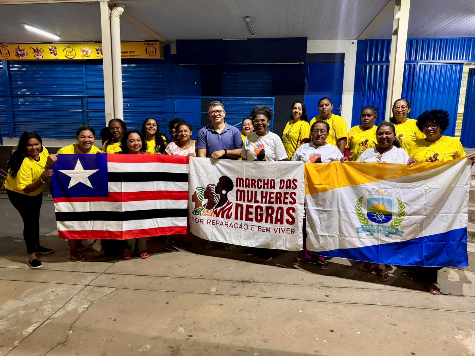 Com apoio da Prefeitura, 30 mulheres de Timon — entre integrantes do Coletivo Flores de Dandara, quebradeiras de coco e representantes quilombolas — participaram da “Marcha das Mulheres Negras por Reparação e Bem Viver 2025”.