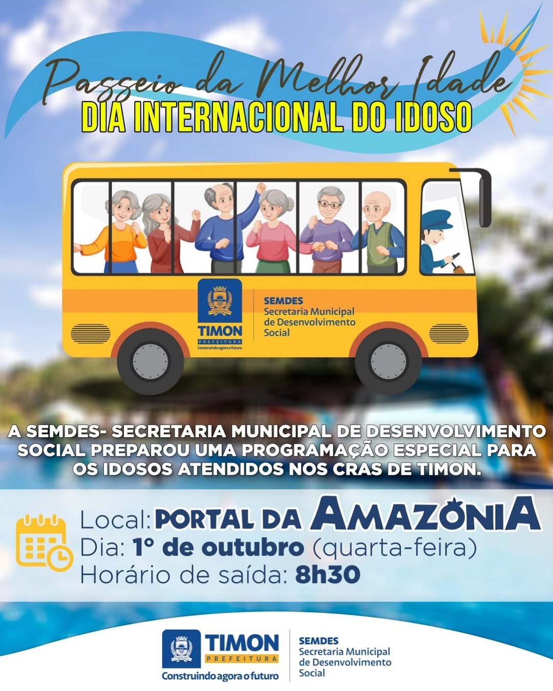 Em alusão ao Dia Internacional do Idoso, comemorado nesta quarta-feira (1º), a Secretaria Municipal de Desenvolvimento Social (SEMDES) de Timon organizou uma programação especial voltada aos beneficiários atendidos pelos Centros de Referência de Assistência Social (CRAS) e pelo Centro do Idoso.